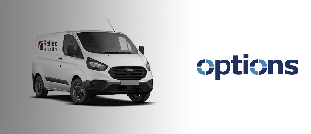 As part of its fleet requirements, Options Energy sources light commercial vehicles and cars from Reflex Vehicle Hire, including double-cab pick-ups and dropside long wheelbase vans.